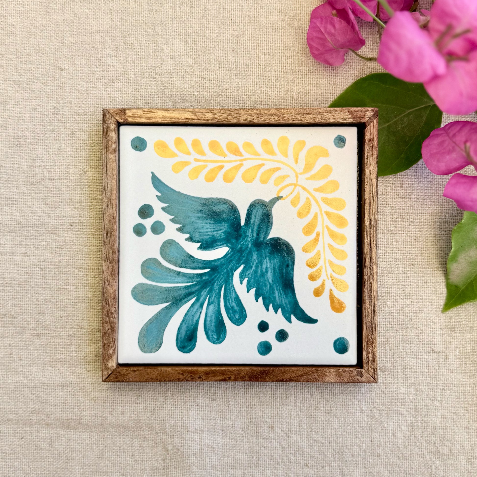 Our Talavera-style coasters, beautifully framed in rich teak wood, add a pop of colour and character to any table. Mix and match with other coasters from the same collection to create your own perfect set. Thoughtfully crafted and easy to love, they make a lovely gift for housewarmings, celebrations, or anyone who enjoys a little art with their chai or coffee.